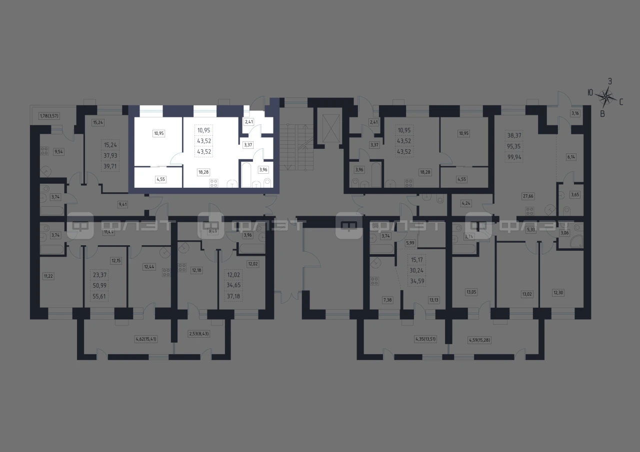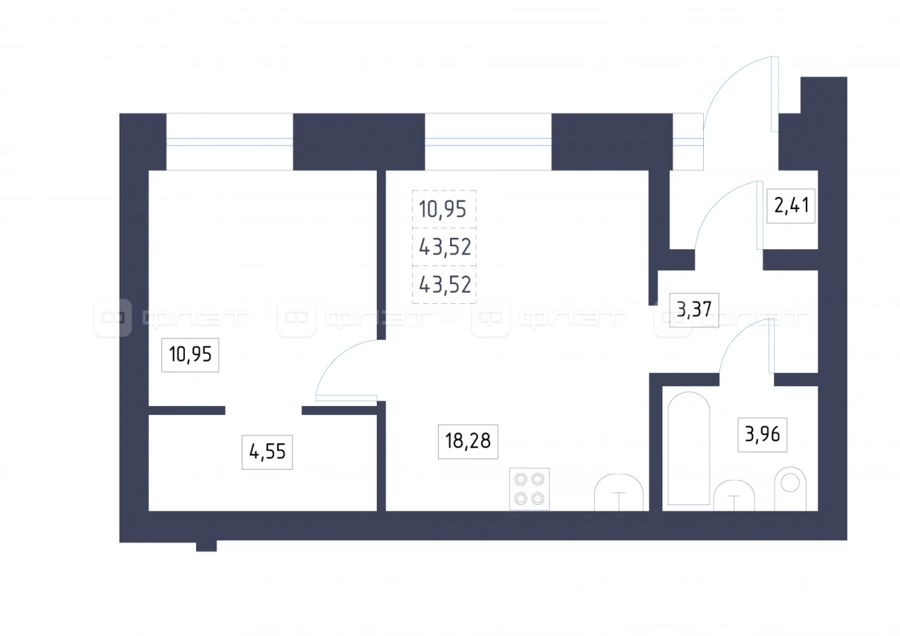 - 43.52/10.95/18.28 м²