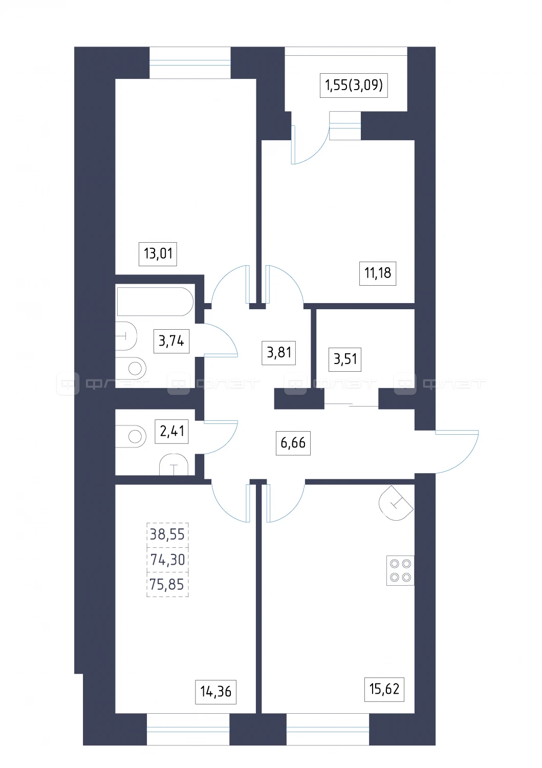 - 75.85/38.55/15.62 м²