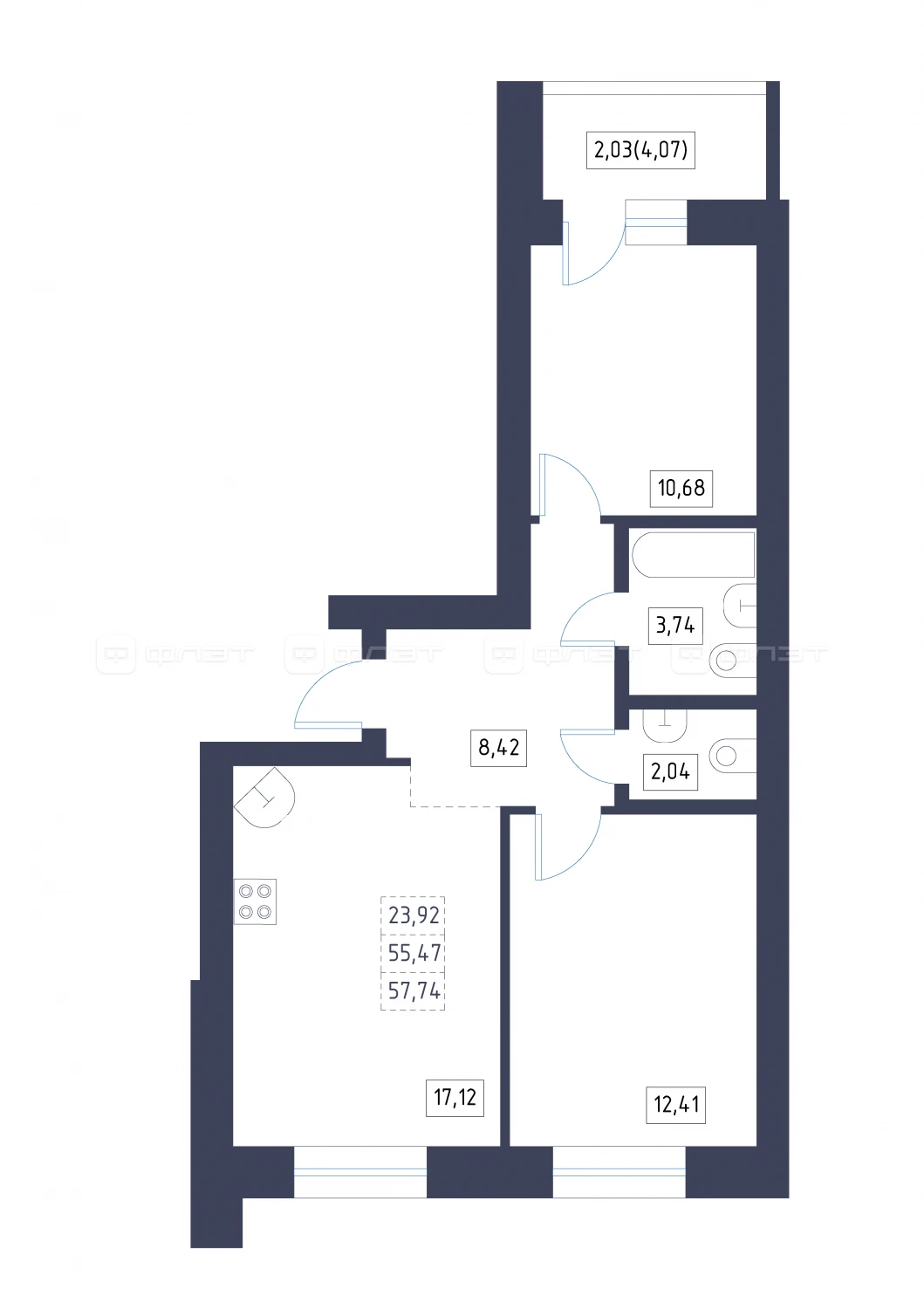 2-комнатная квартира, №447